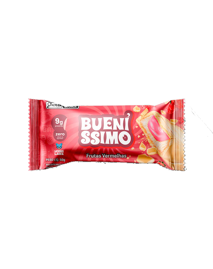 A Barra Bueníssimo Frutas Vermelhas 40g Under Labz oferece o equilíbrio perfeito entre sabor, nutrição e praticidade, com alto teor de proteínas e fibras, ideal para quem busca uma alimentação saudável e deliciosa.