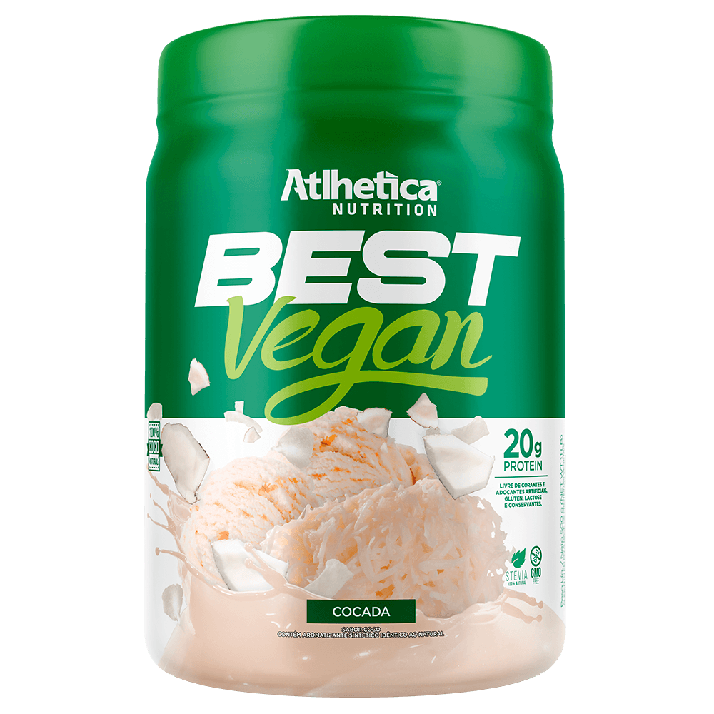 O Best Vegan 500g Cocada Atlhetica Nutrition é um suplemento proteico vegetal com alto valor nutricional, ideal para quem busca ganho de massa magra, recuperação muscular e nutrição 100% vegana, com o sabor delicioso de cocada.