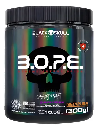 O B.O.P.E Guaraná e Açaí 300g Combo 6 Unidades Black Skull é um pré-treino intenso que proporciona energia explosiva, foco absoluto e resistência muscular, com o sabor marcante e natural de guaraná e açaí.