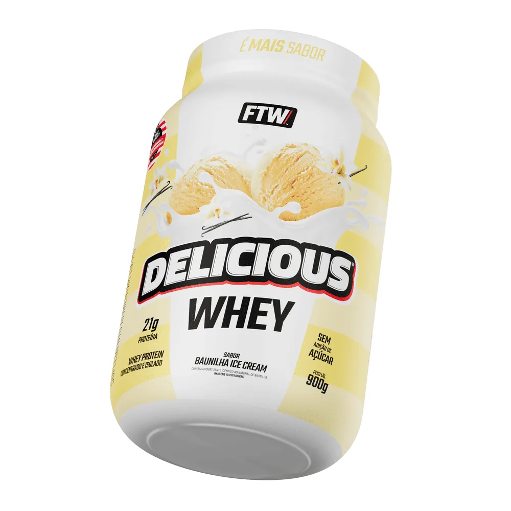 O Delicious Whey FTW sabor Baunilha Ice Cream oferece leveza e cremosidade com alto valor proteico para seus treinos.