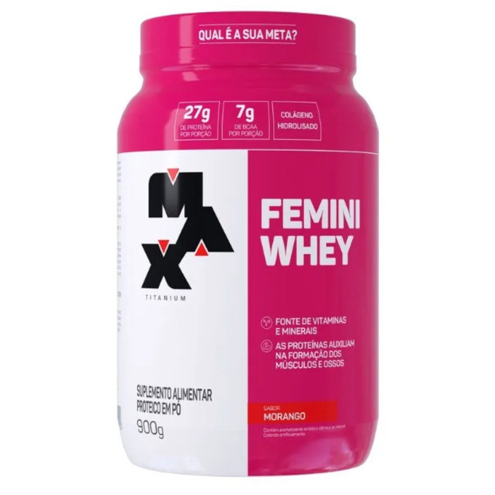 FEMINI WHEY POTE 900G MORANGO MAX TITANIUM