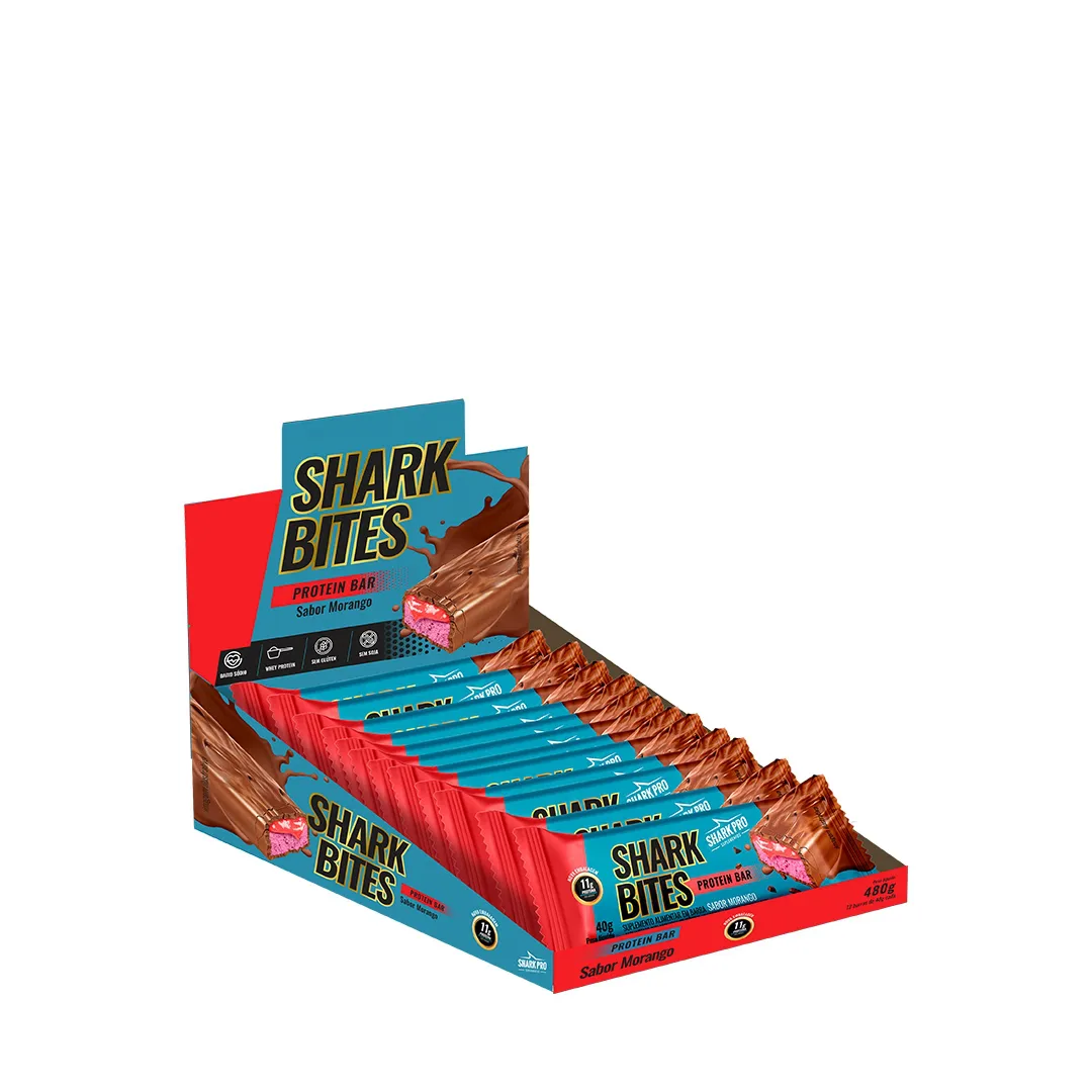 Shark Bites Protein Bar Morango 40G Display C/12 Uni Shark Pro