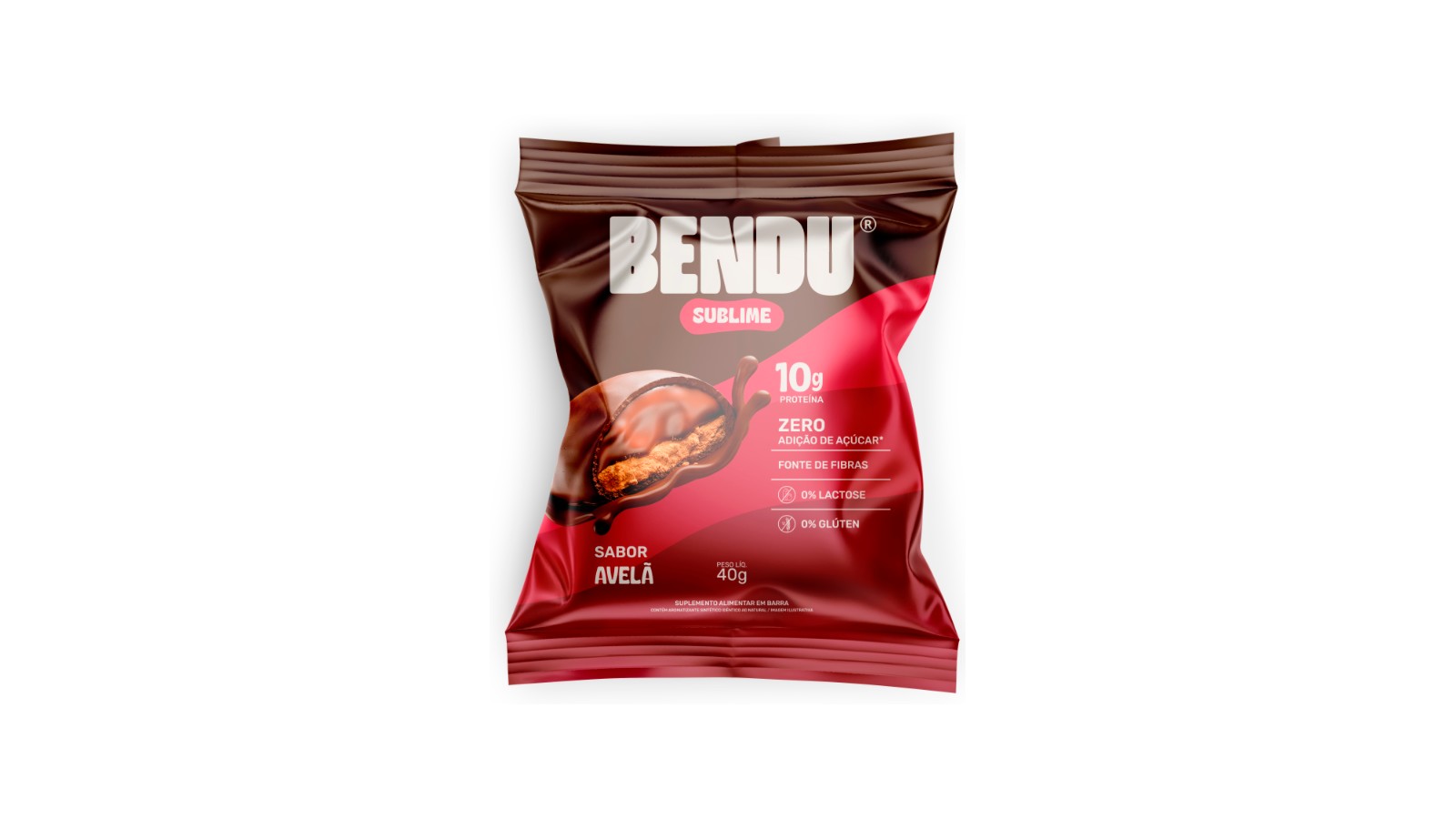 A Sublime Avelã 40g Bendu é a escolha perfeita para quem quer unir nutrição e prazer em um só produto. Produzida com pasta de avelã natural, proteínas de alto valor biológico e chocolate de verdade, ela entrega energia e saciedade em cada mordida.