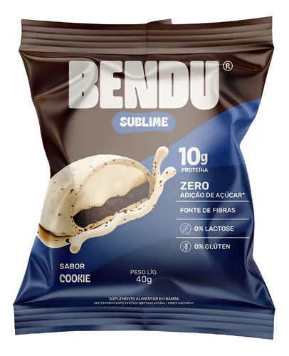 O Sublime Cookies 40g Bendu é uma barra proteica deliciosa e nutritiva, feita com pedacinhos de cookies e chocolate puro, ideal para um lanche saudável e energético.
