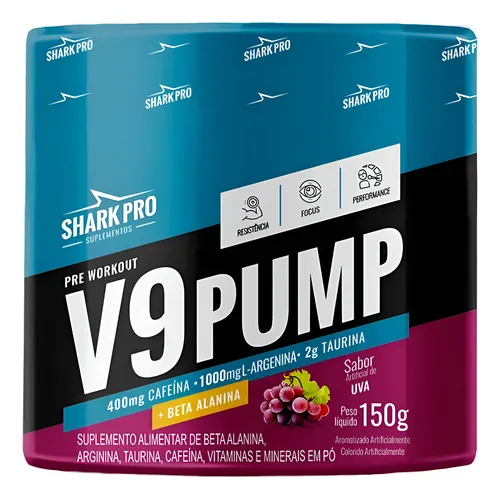 O V9 Pump Pré-Treino 150g Uva Combo com 6 Unidades – Shark Pro foi desenvolvido para atletas que desejam melhorar performance, aumentar força e concentração durante os treinos. Sua fórmula contém aminoácidos, cafeína e vasodilatadores, garantindo energia explosiva, pump muscular e foco total.