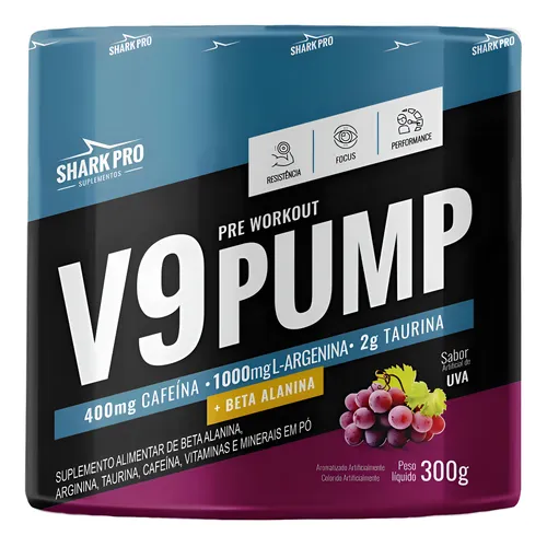 O V9 Pump Pre Workout Pré-Treino Guaraná com Açaí 300g Combo com 6 Unidades – Shark Pro foi desenvolvido para quem busca máximo desempenho físico e mental, proporcionando energia explosiva, foco e resistência prolongada durante os treinos.