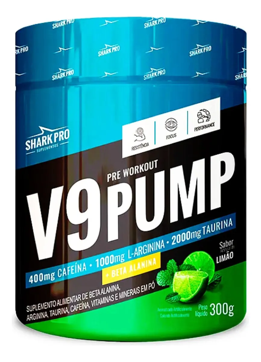 O V9 Pump Pre Workout Pré-Treino Limão 300g Combo com 6 Unidades – Shark Pro foi formulado para quem busca treinos de alta performance, com máxima energia, foco e resistência desde o primeiro minuto.