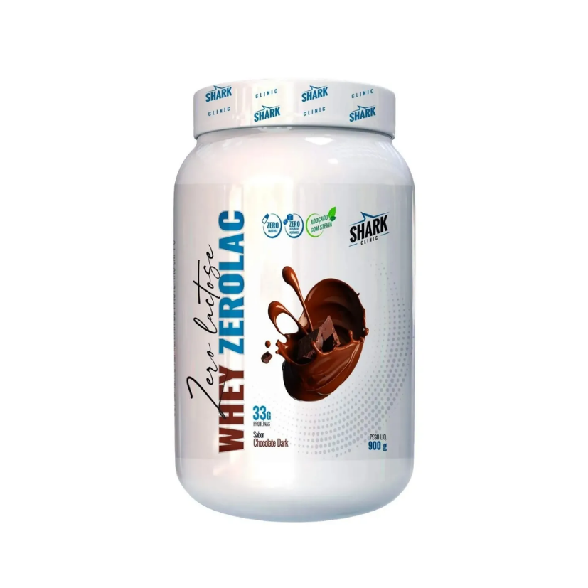 WHEY ZEROLAC POTE 900G CHOCOLATE DARK LINHA CLINIC SHARK PRO